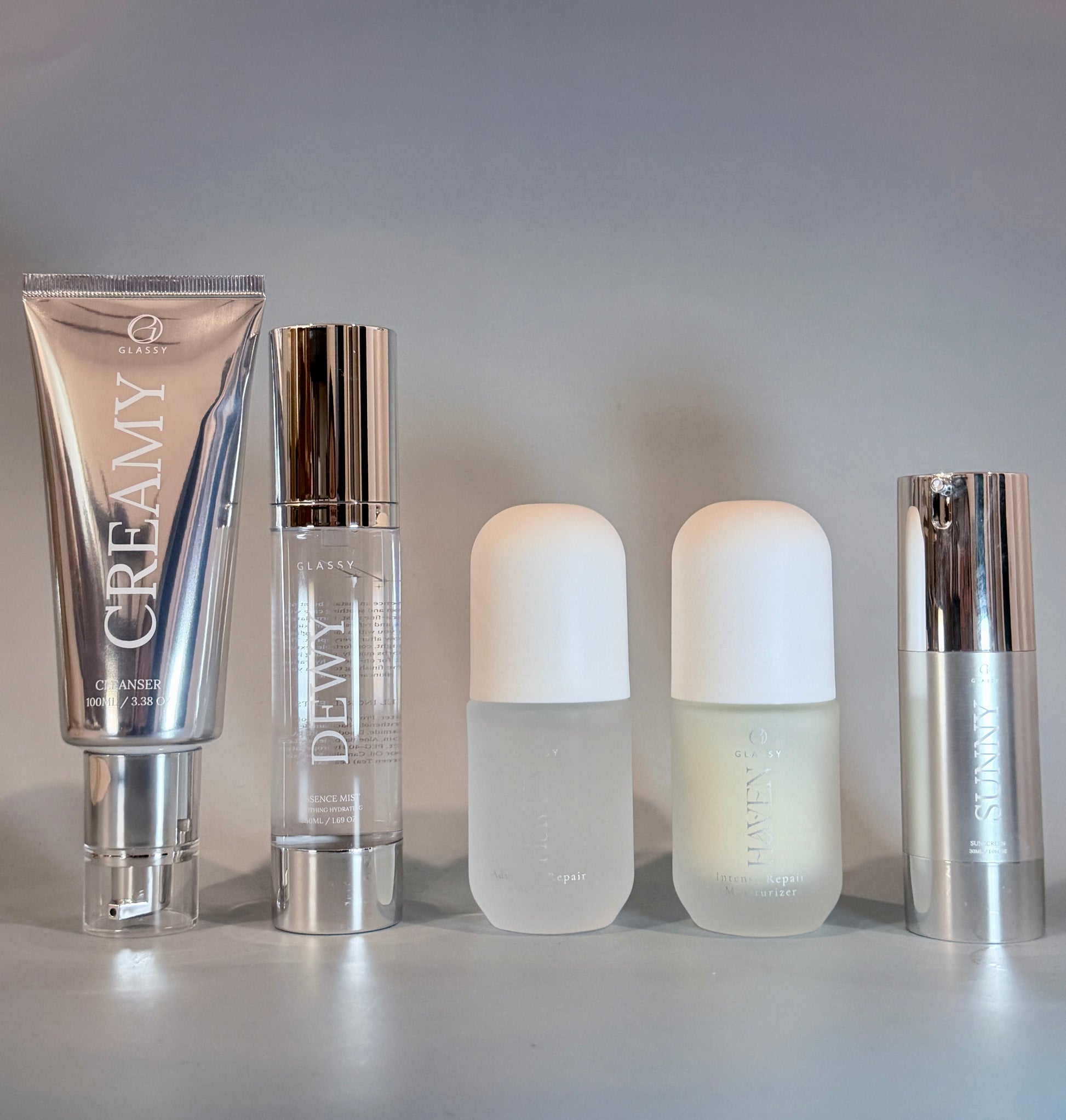 Elevate your skincare ritual with Glassy Skincare's Haven and Glassy Essentials Set, a meticulously curated collection of five essential products designed to unveil the stable, calm skin that sensitive skin crave.